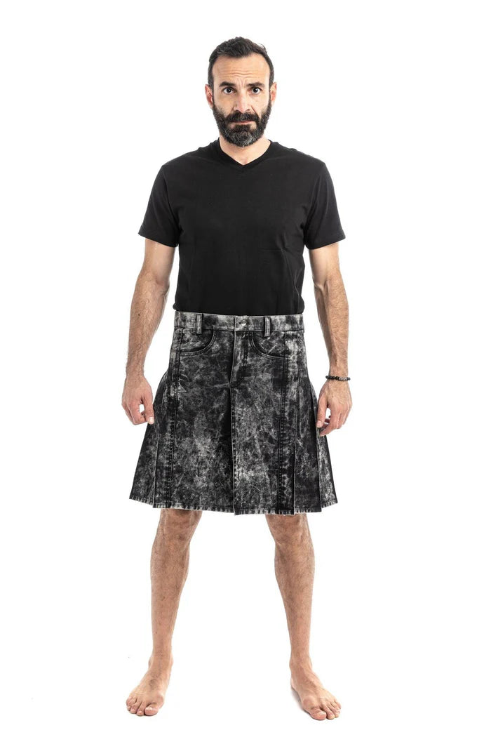Urban Utility Design – Blends casual denim aesthetics with the traditional kilt form, perfect for streetwear, festivals, and contemporary styling.